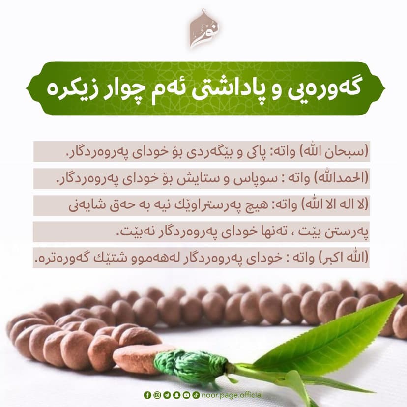 گهورهيى و پاداشتى ئهم چوار زيكره...
