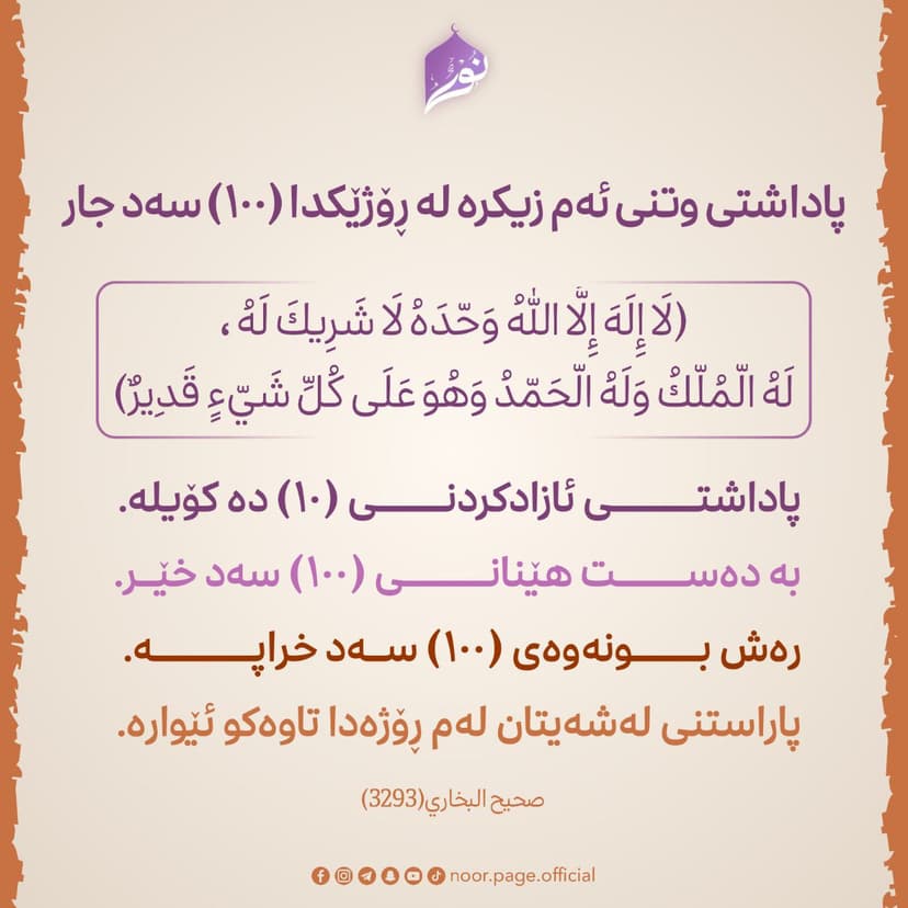 پاداشتی وتنی ئەم زیکرە لە ڕۆژێکدا (١٠٠) جار