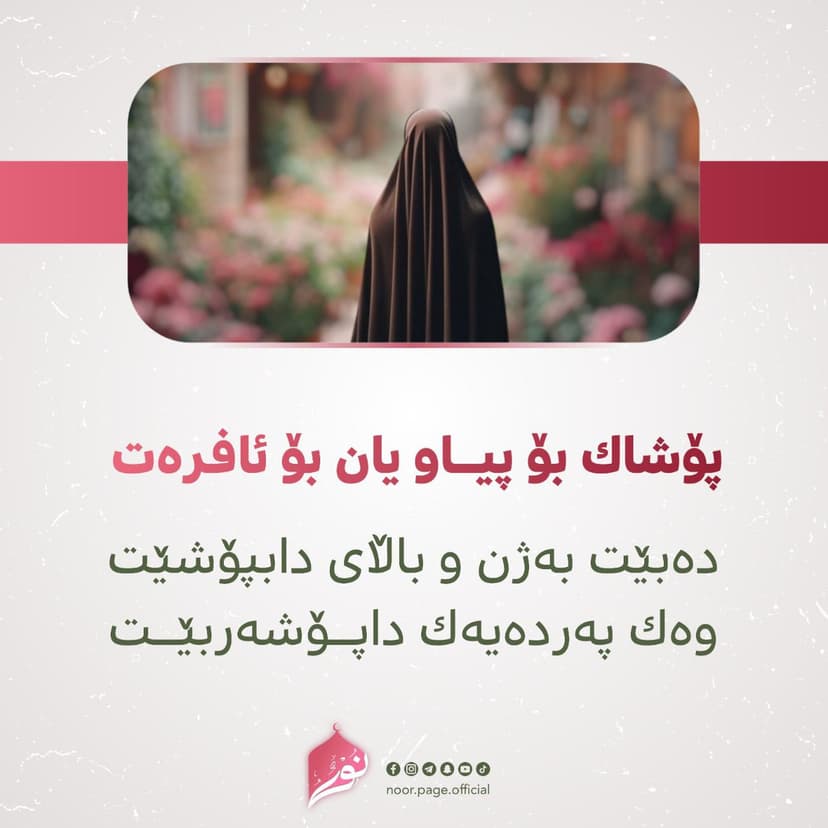 پۆشاک بۆ پیاو یان بۆ ئافرەت دەبێت بەژن و باڵای دابپۆشێت وەک پەردەیەک داپۆشەربێت